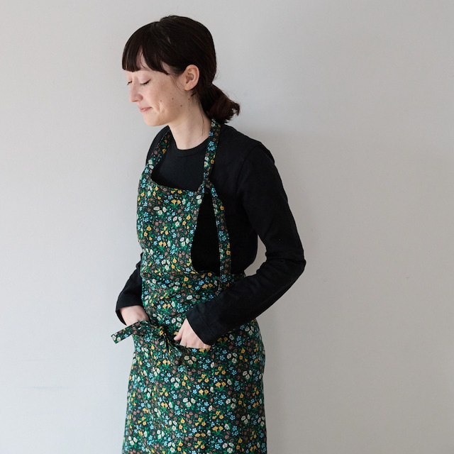 SQUARE APRON / LIBERTY Emilia's Flower (green)