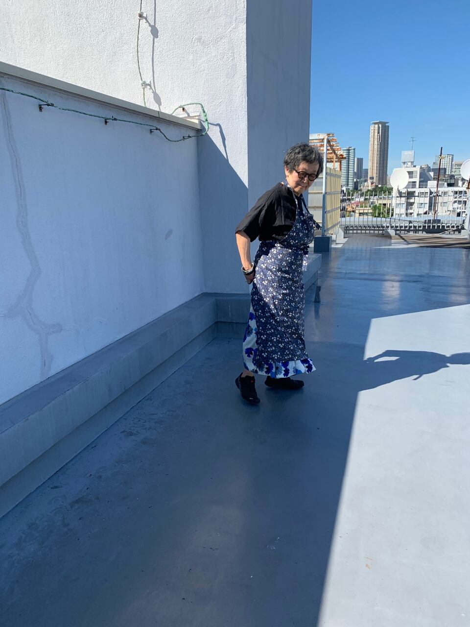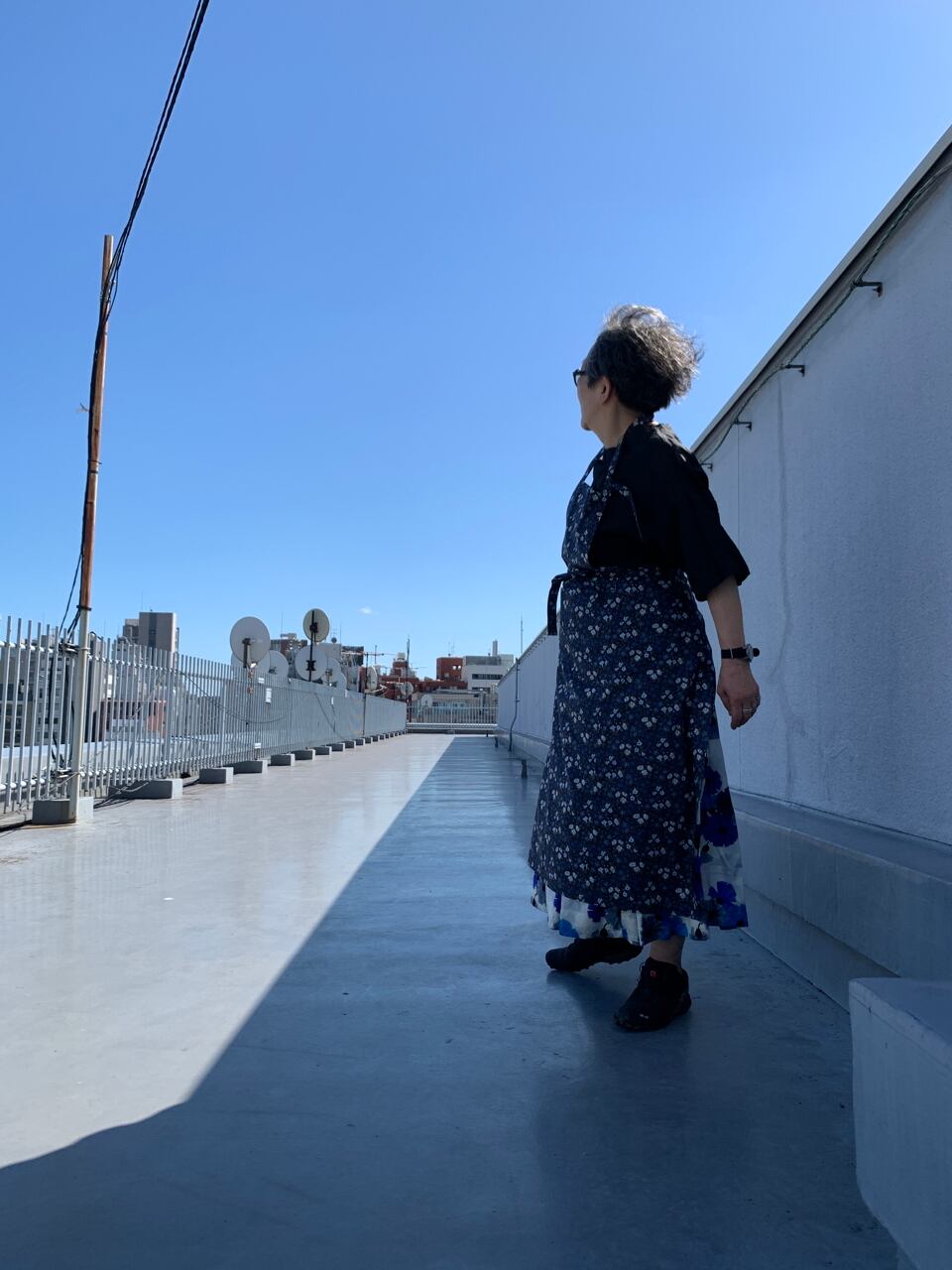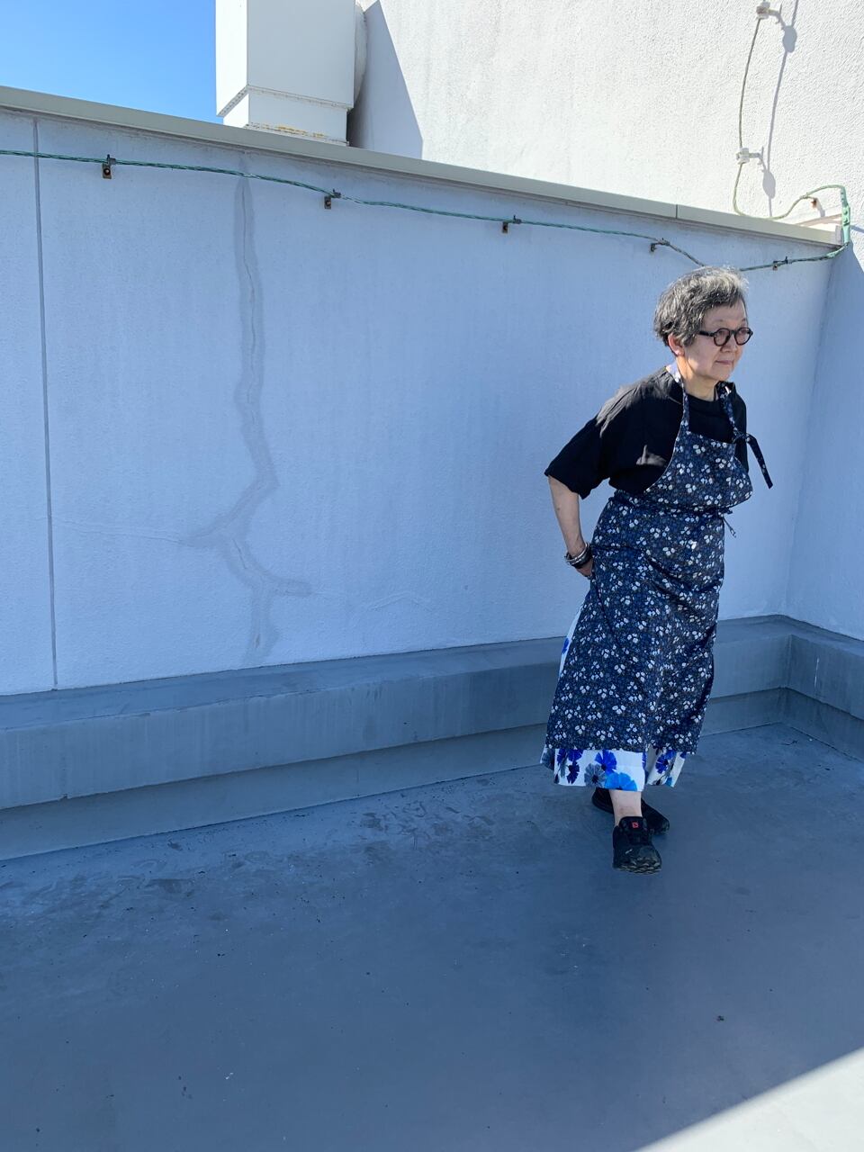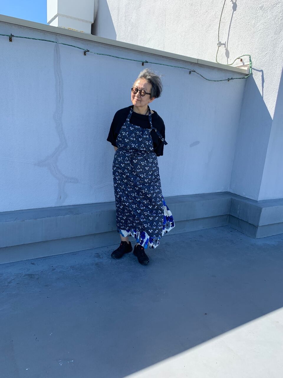 大好きなリバティプリントの中からスクエアエプロンに選んだのは、ブルーのマリア柄。