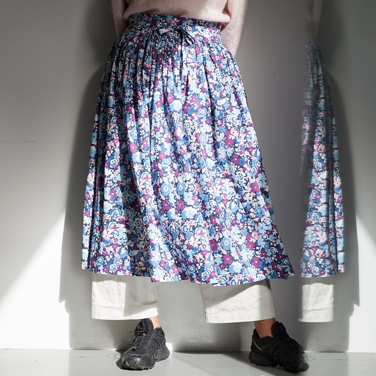 A gathered apron that looks like a skirt. You might think that a fluffy, gathered apron is too romantic, but that's not the case - that's what's great about Liberty prints! From my favorite Liberty prints, I chose the purple "Gloria Romo" pattern for this gathered apron. It's an apron perfect for the unique, grown-up woman.